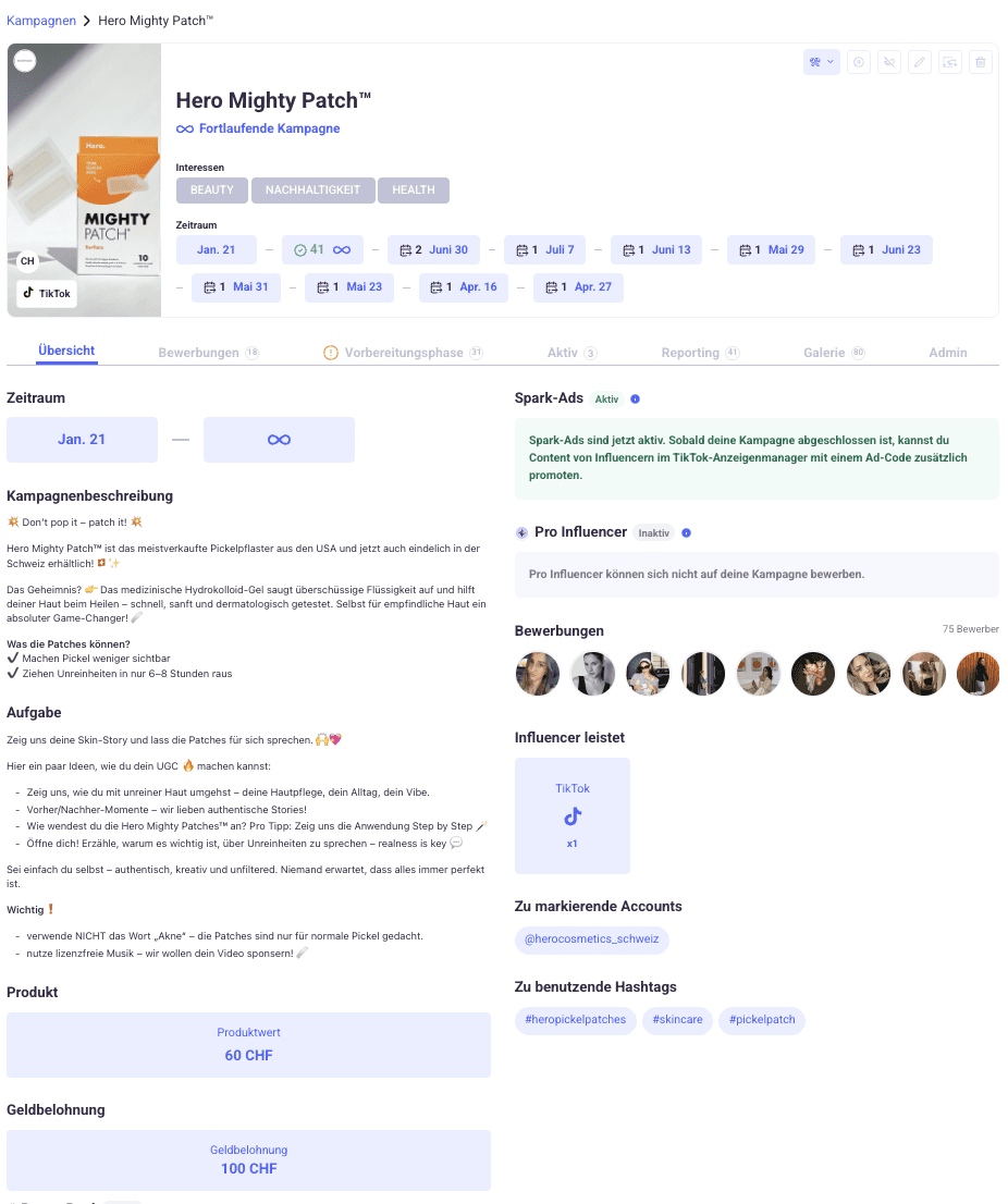 Bis Juli 2024 war Hero Mighty Patches in der Schweiz nicht erhältlich. Zum lokalen Launch setzte Hero auf eine sechsmonatige Influencer-Kampagne mit Refluenced, komplett auf authentischem Content basierend.